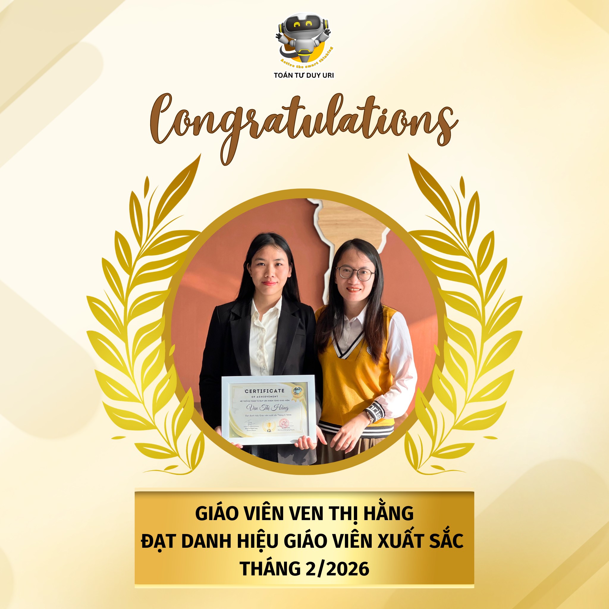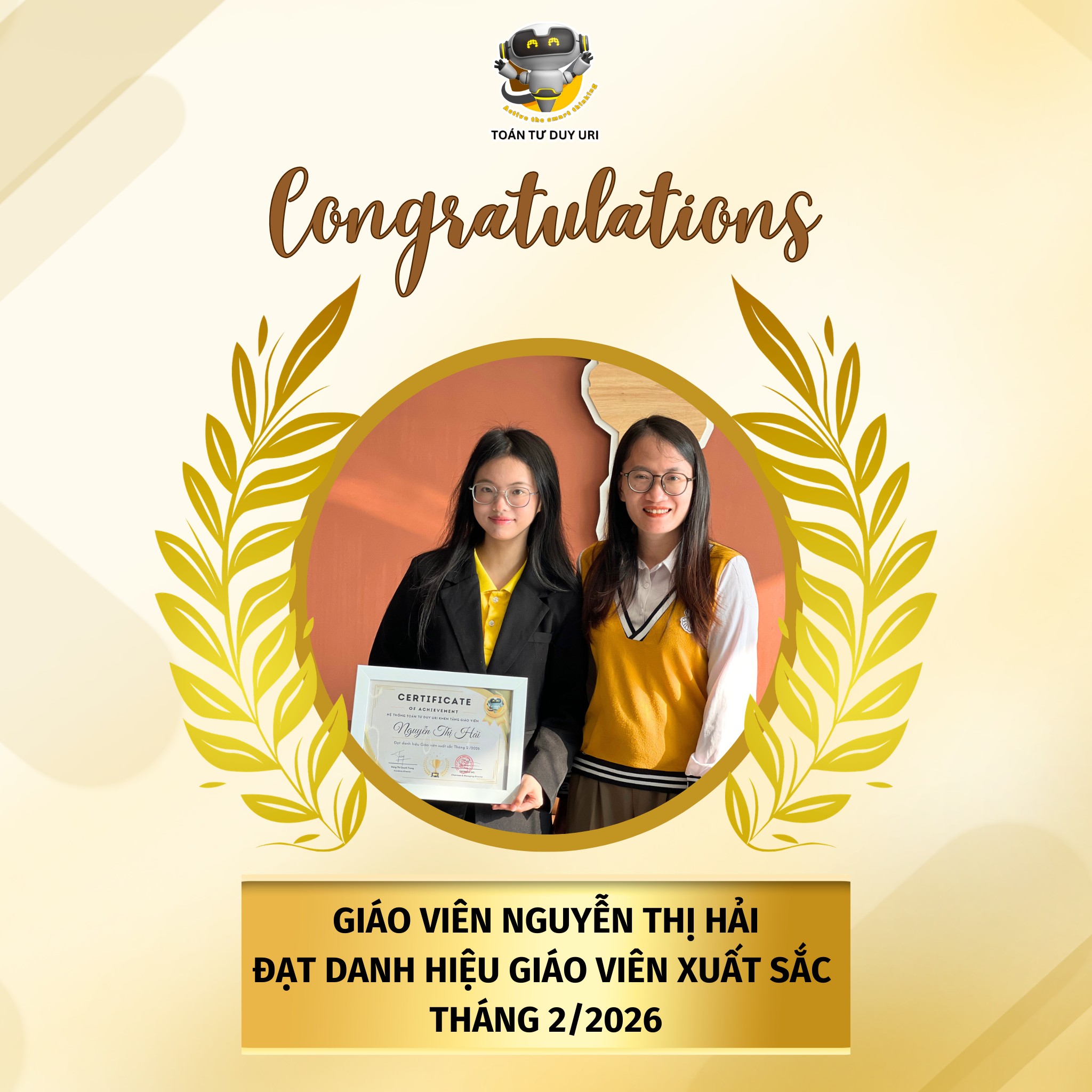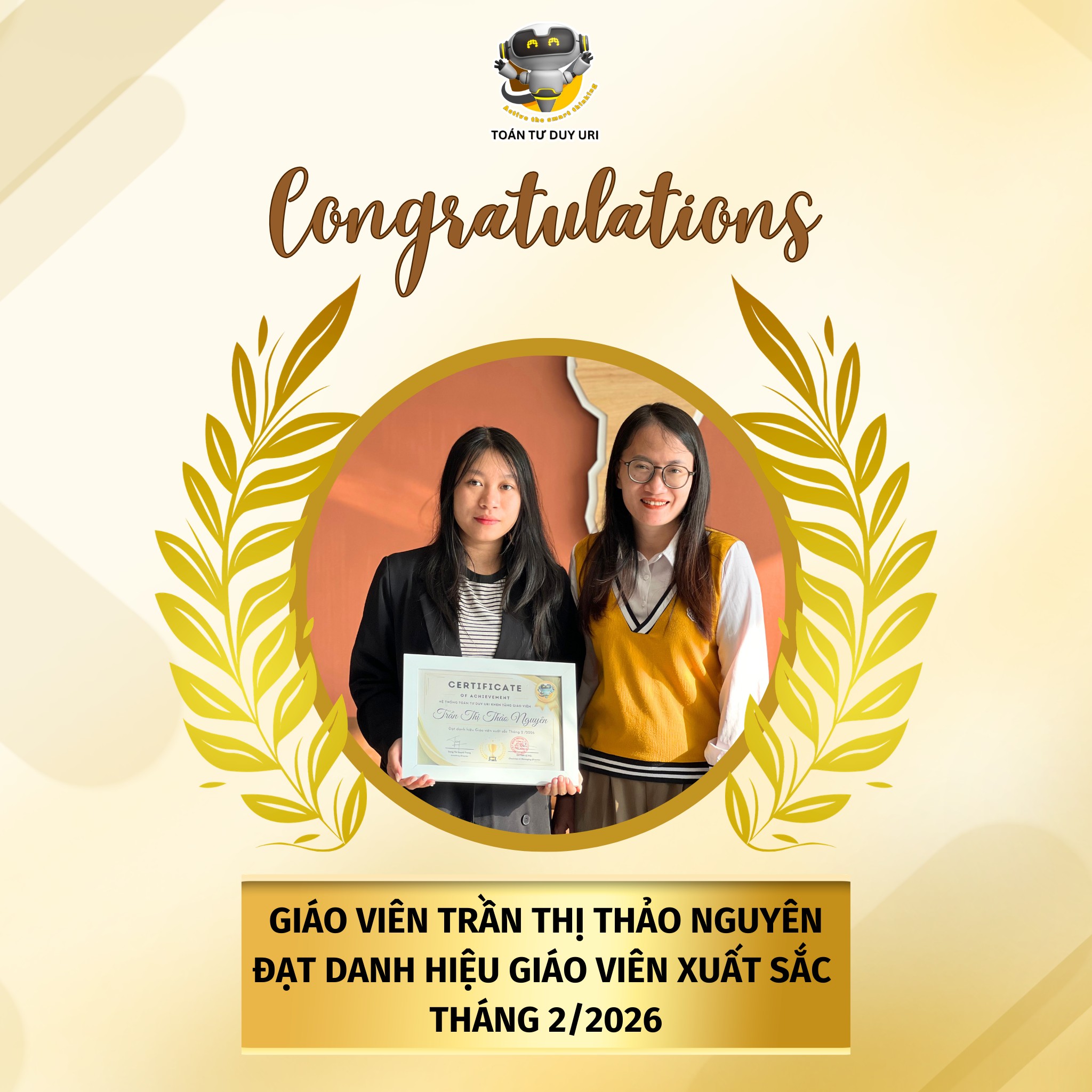 👏 Xin chúc mừng tất cả các cô đã đạt danh hiệu Giáo viên xuất sắc tháng 1 & 2/2026. Hệ thống Toán Tư Duy URI tin rằng, với sự đồng hành của đội ngũ giáo viên tâm huyết, hành trình khai phóng tư duy cho học sinh sẽ ngày càng lan tỏa mạnh mẽ hơn nữa.