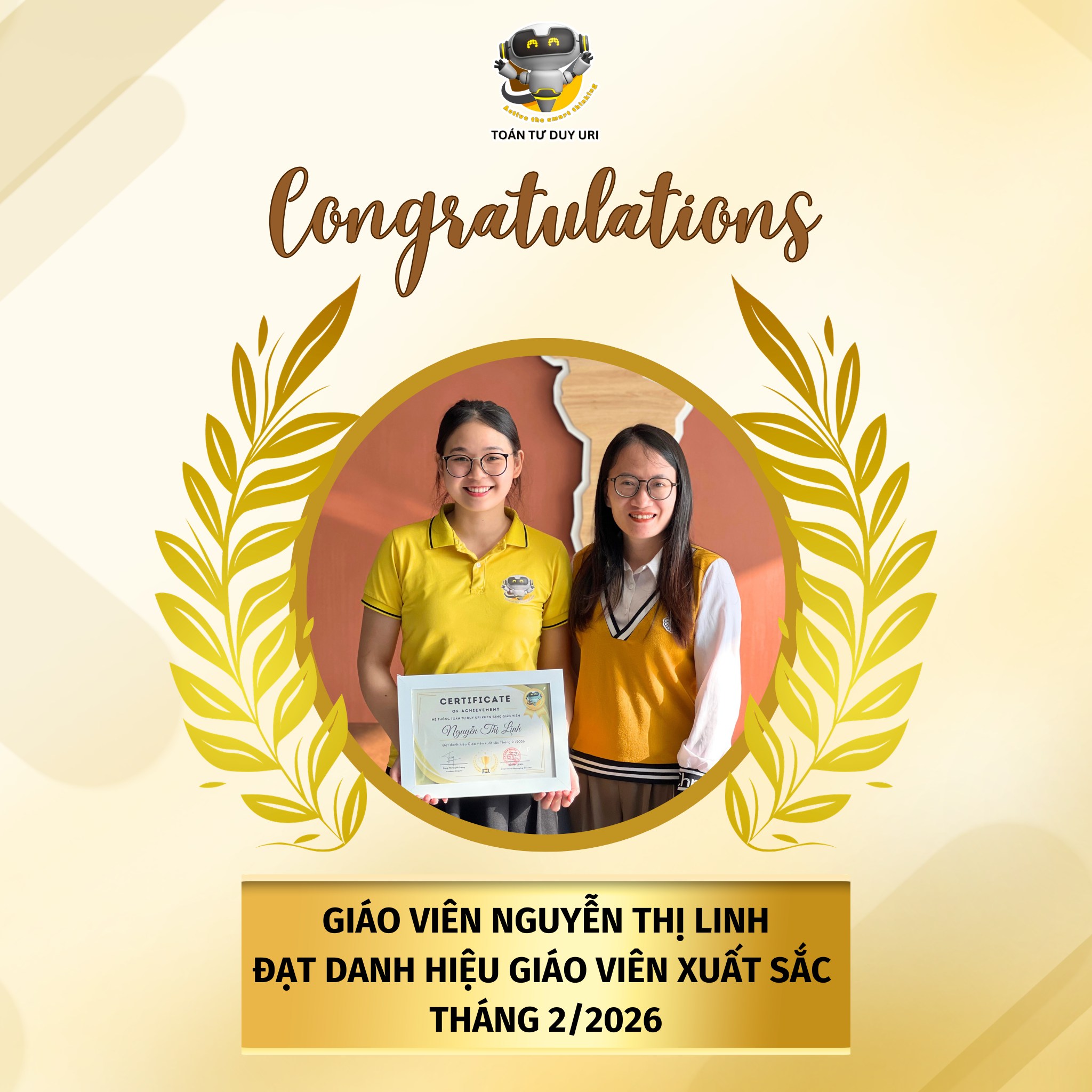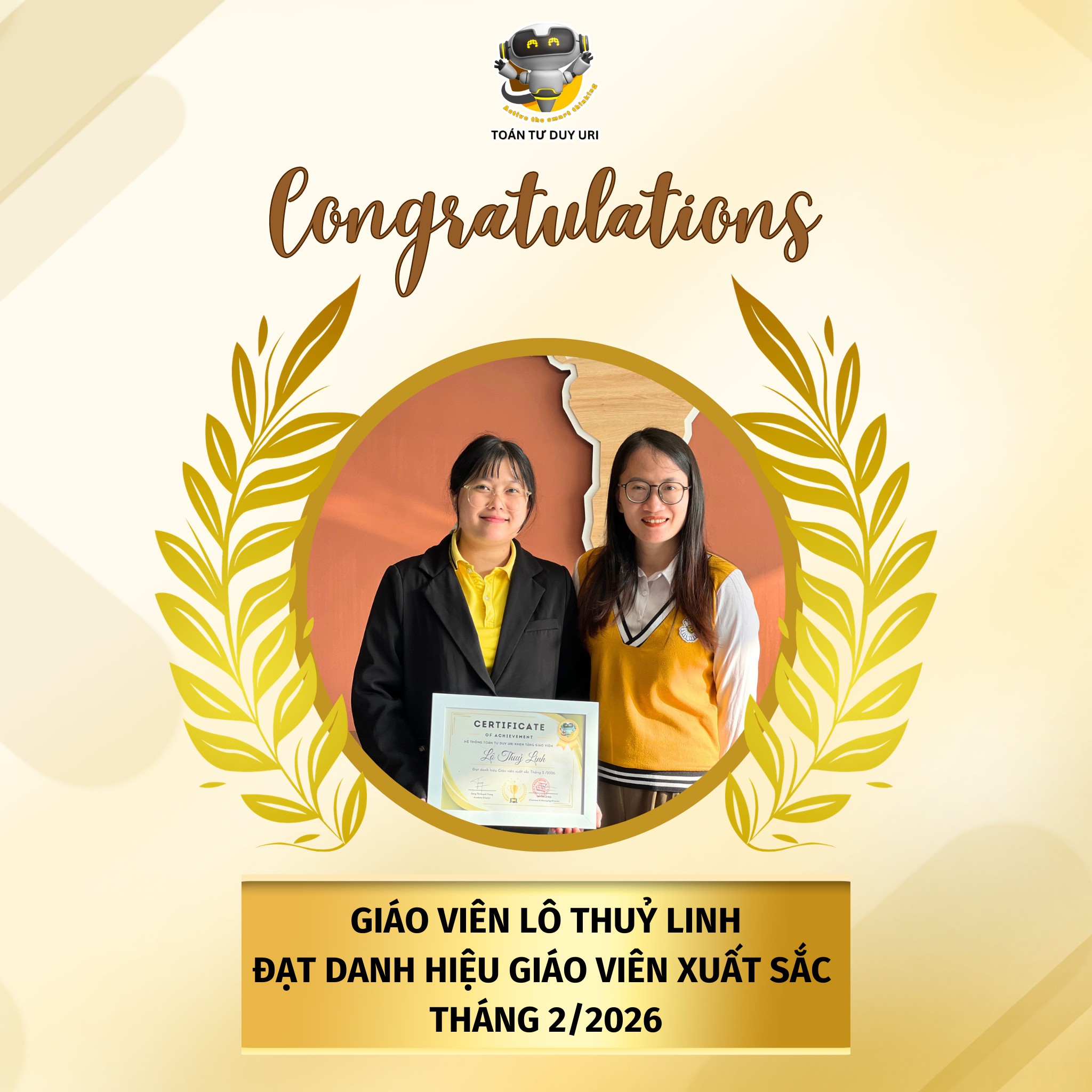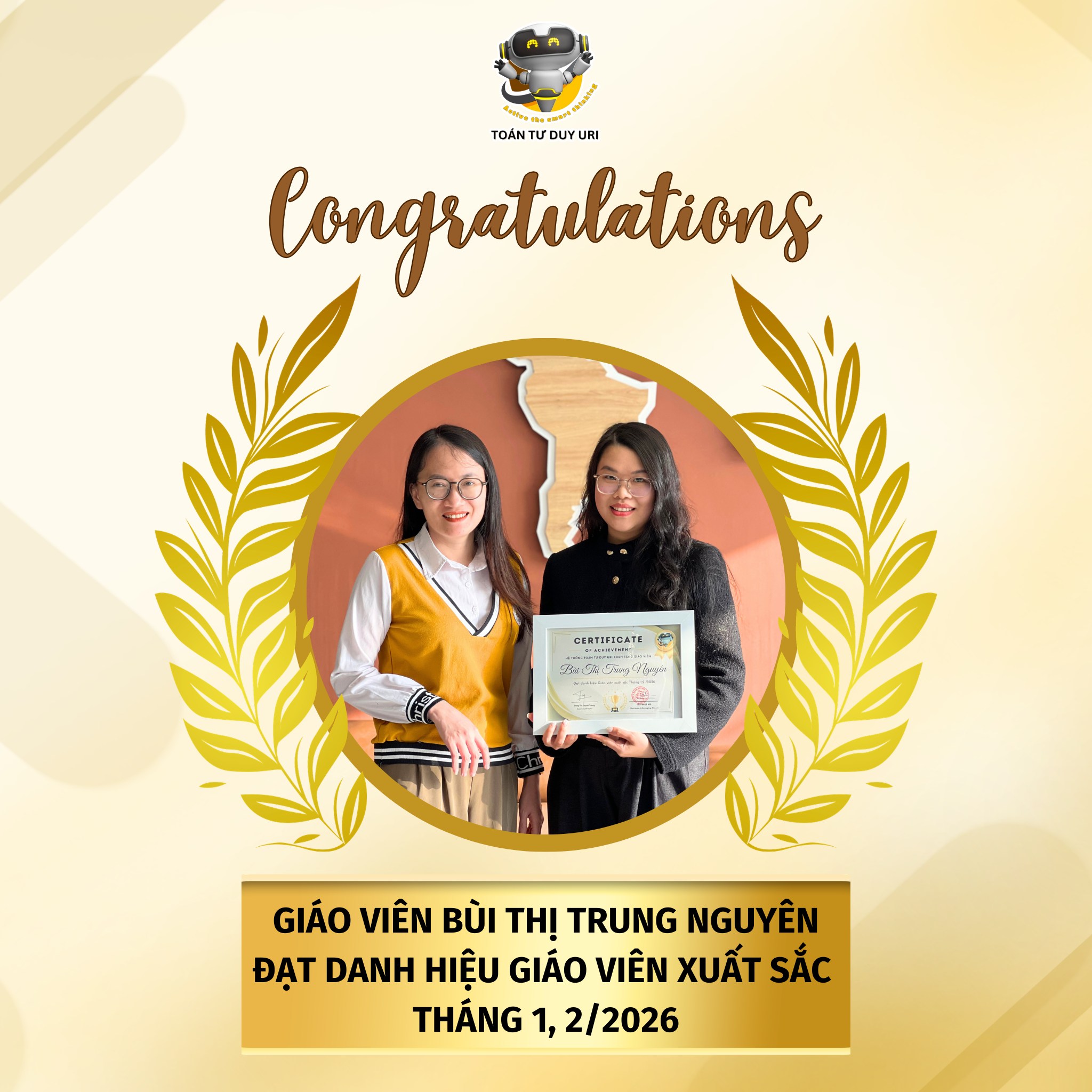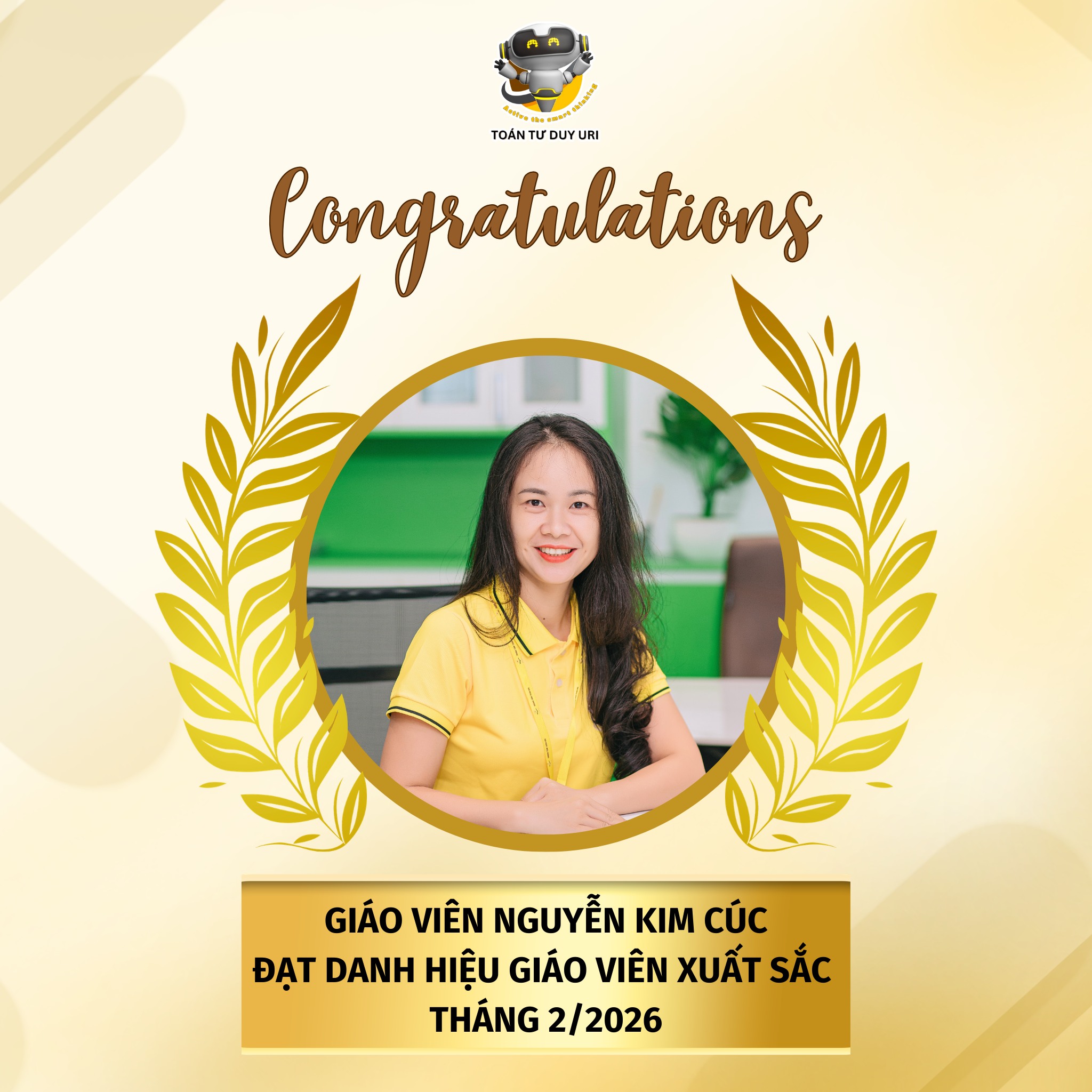 👏 Xin chúc mừng tất cả các cô đã đạt danh hiệu Giáo viên xuất sắc tháng 1 & 2/2026. Hệ thống Toán Tư Duy URI tin rằng, với sự đồng hành của đội ngũ giáo viên tâm huyết, hành trình khai phóng tư duy cho học sinh sẽ ngày càng lan tỏa mạnh mẽ hơn nữa.