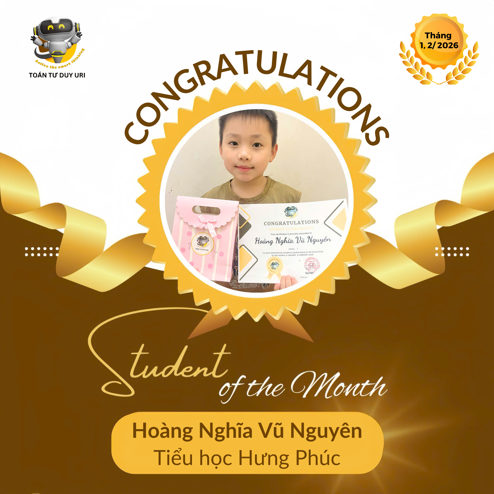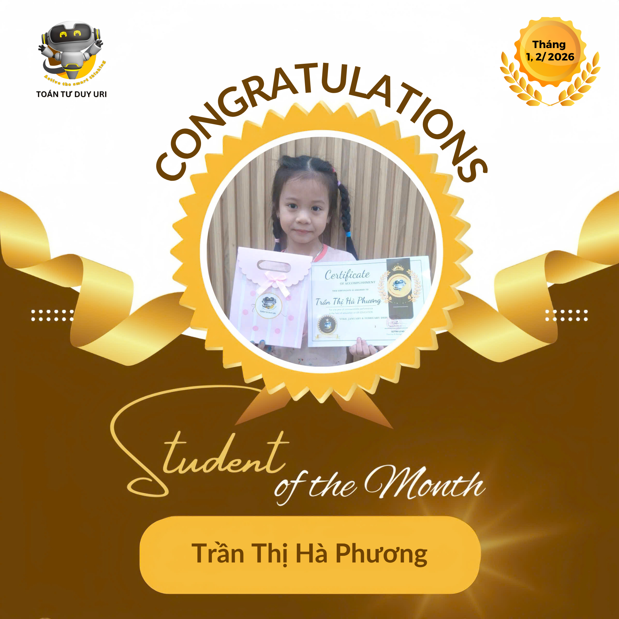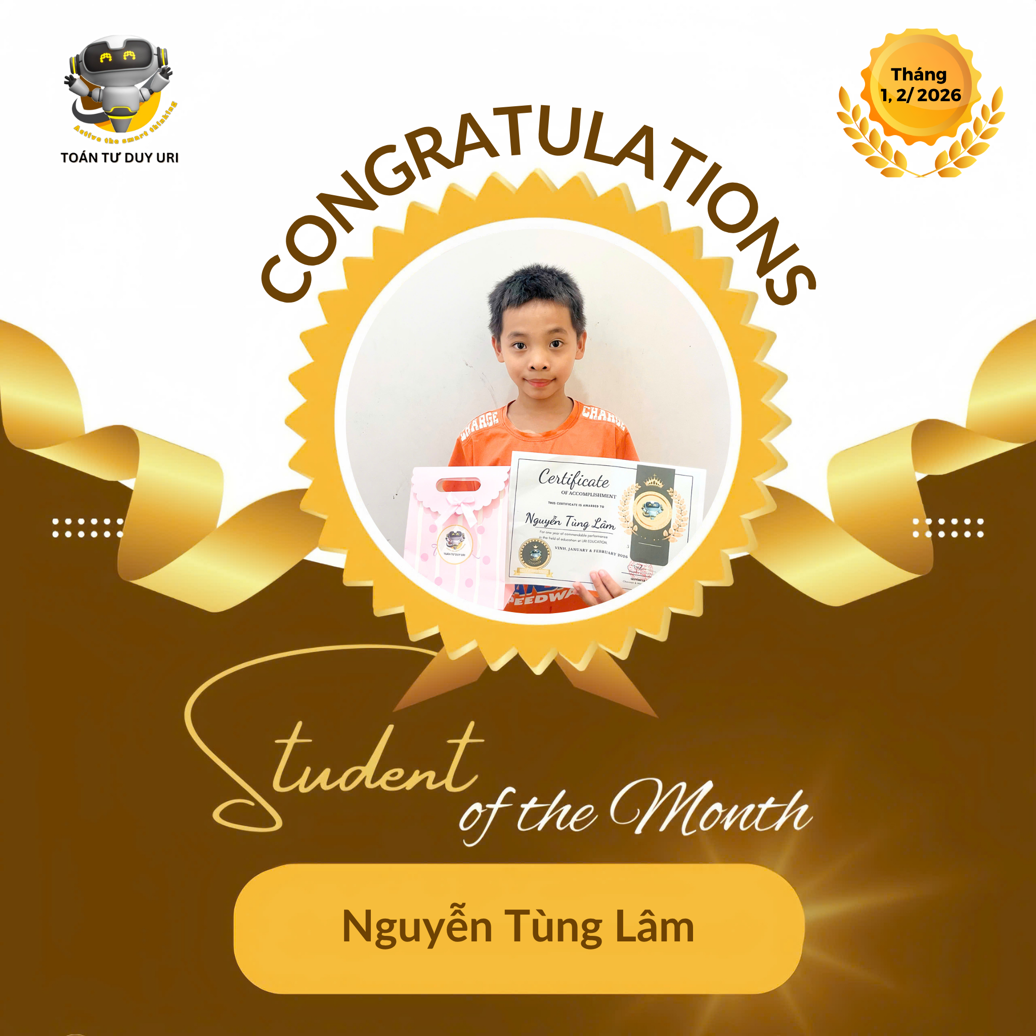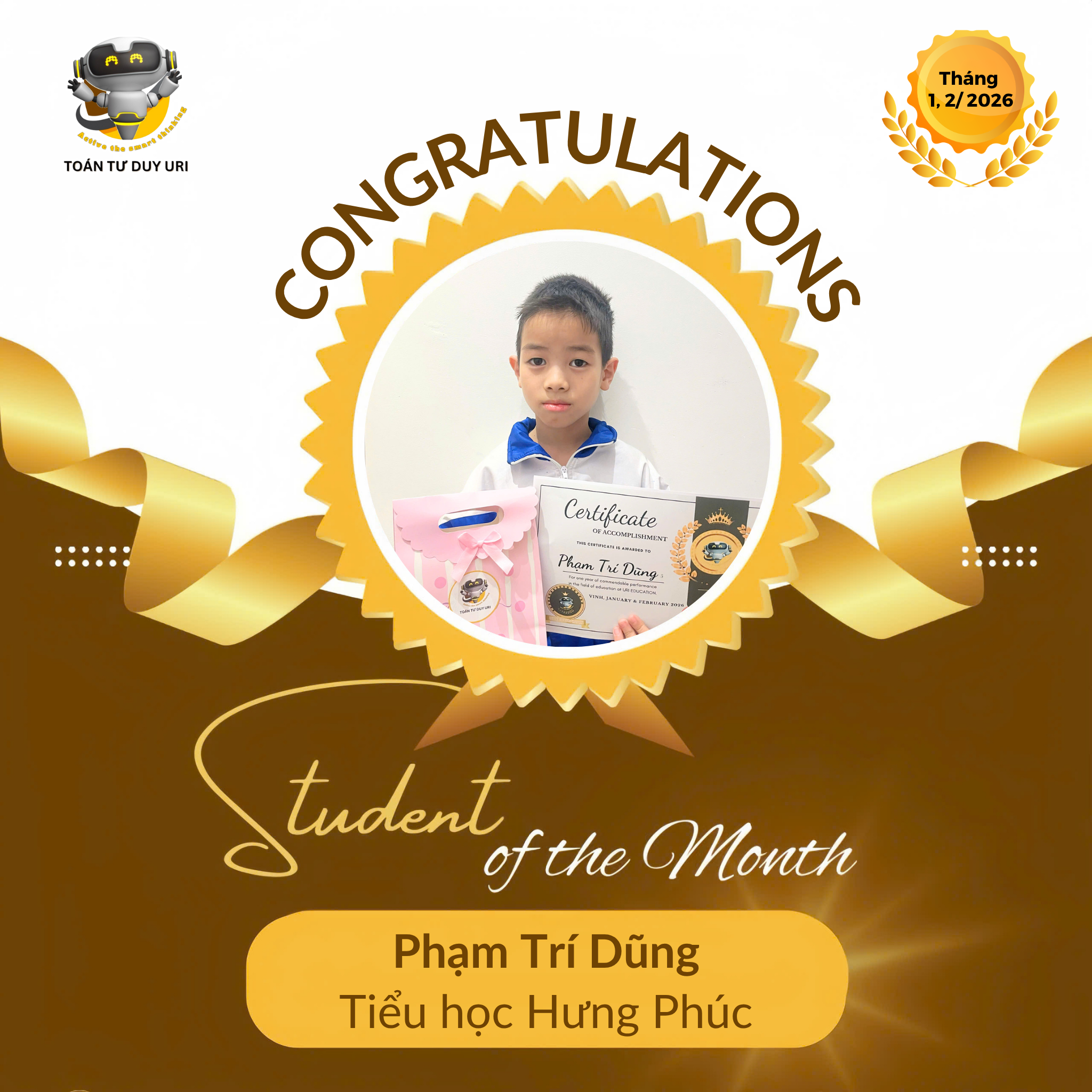 Hệ thống Toán Tư Duy URI mong niềm vui nho nhỏ này sẽ động viên các bạn nhỏ tiếp tục phát huy và đạt được kết quả tốt hơn nữa.