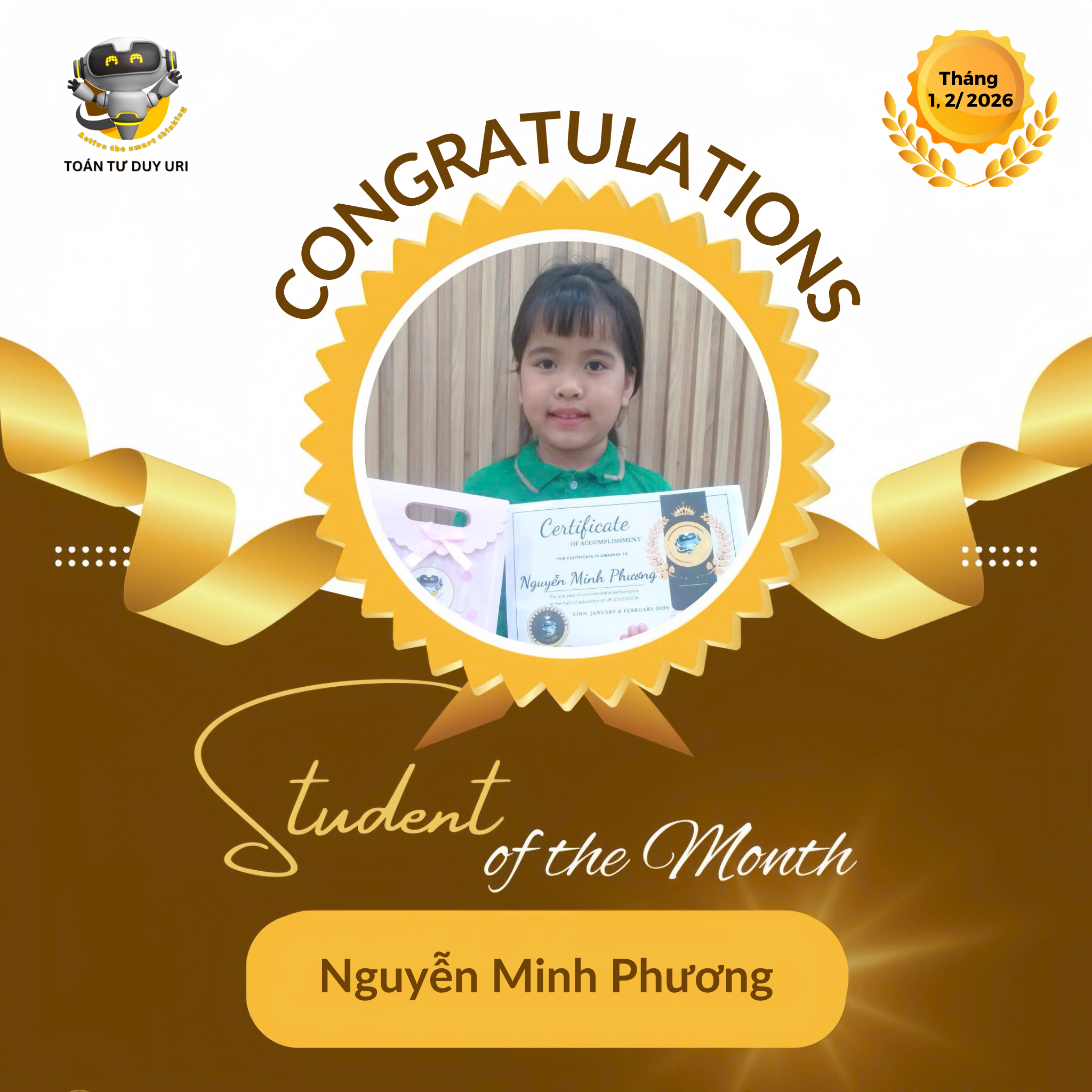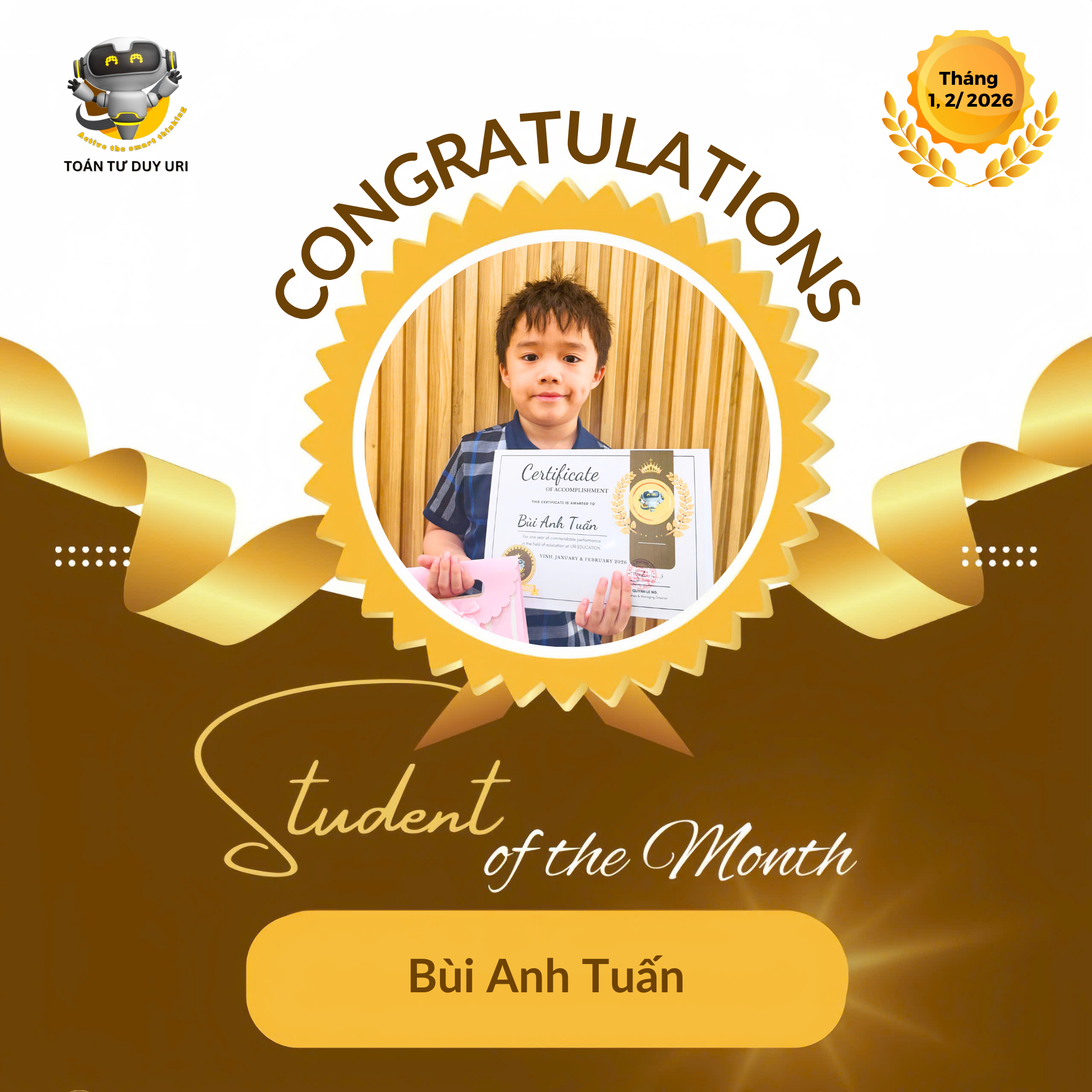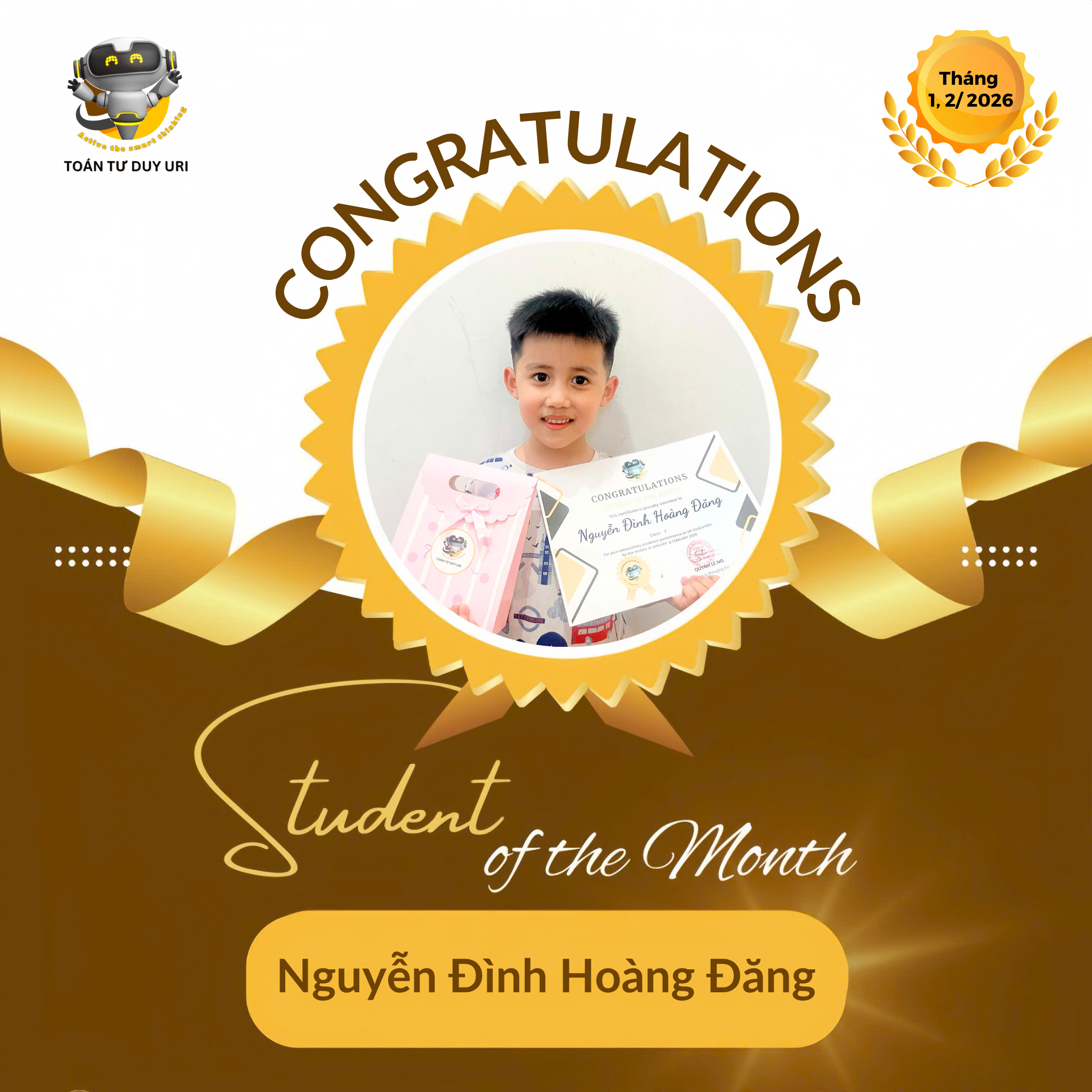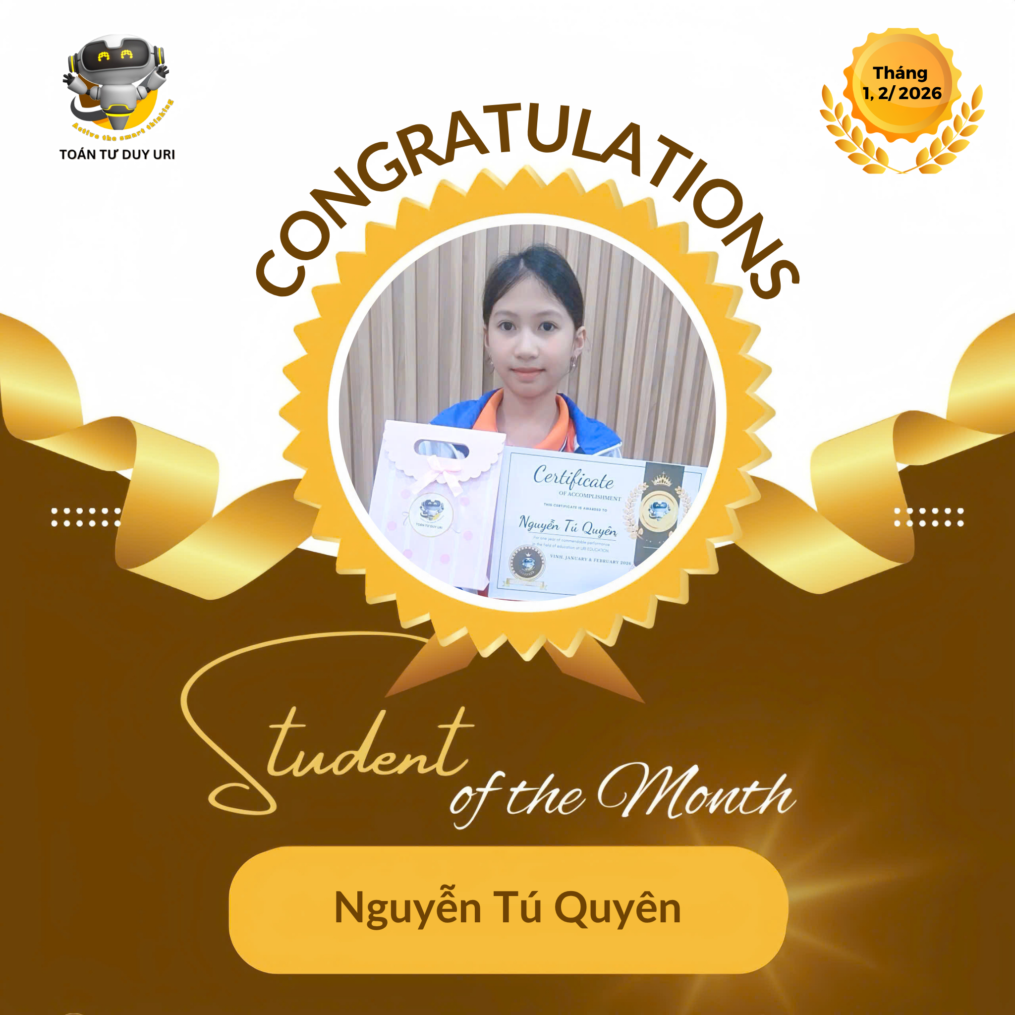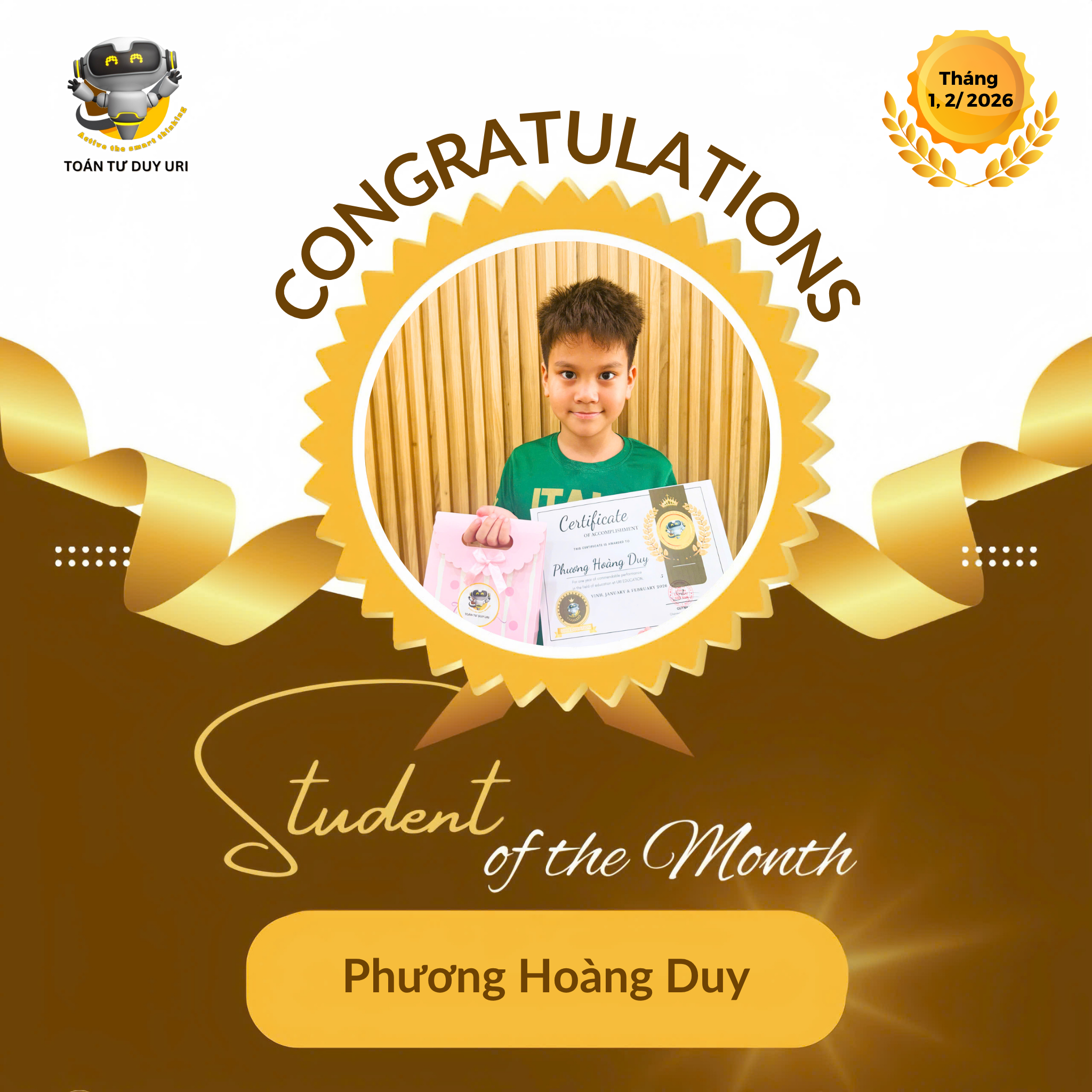 Hệ thống Toán Tư Duy URI mong niềm vui nho nhỏ này sẽ động viên các bạn nhỏ tiếp tục phát huy và đạt được kết quả tốt hơn nữa.
