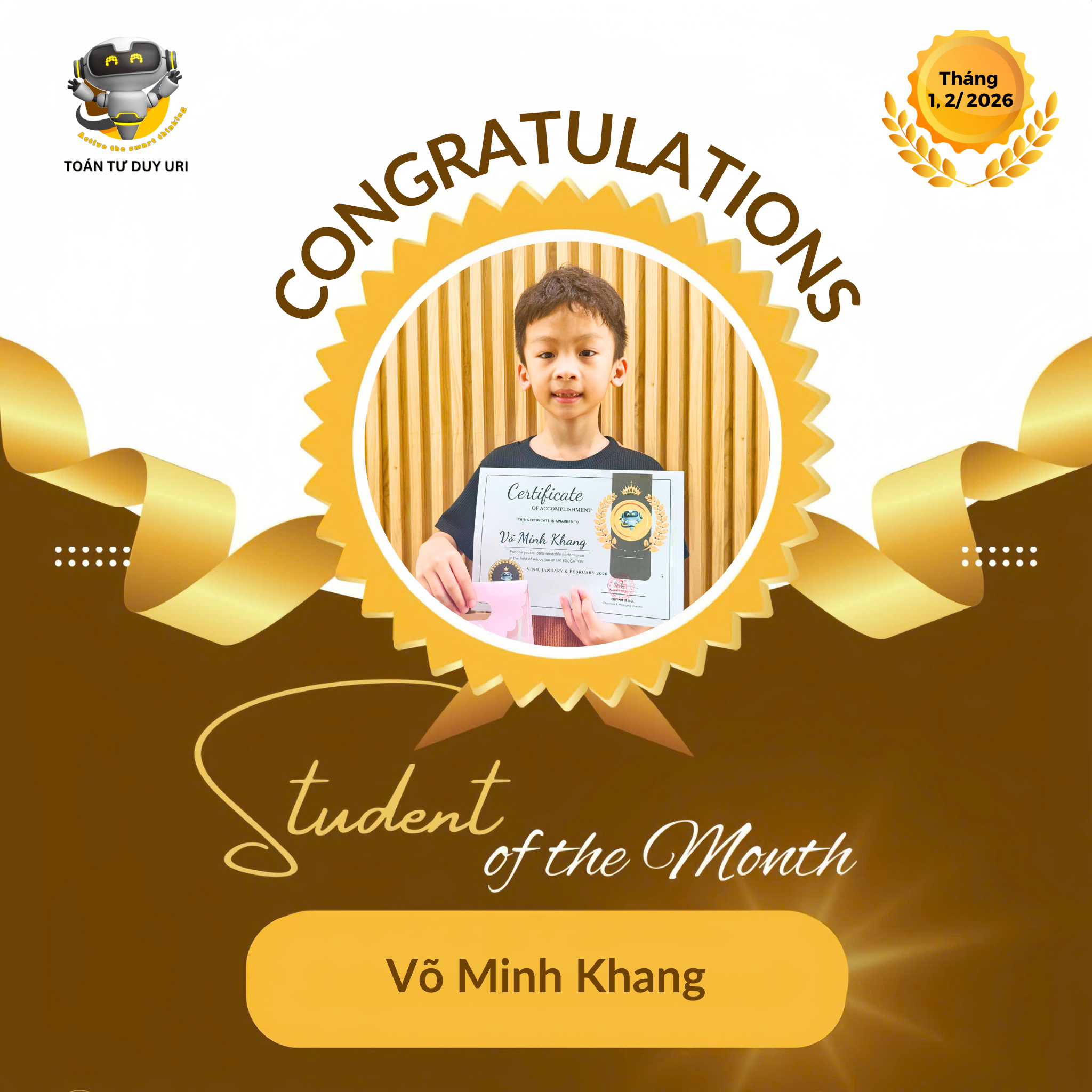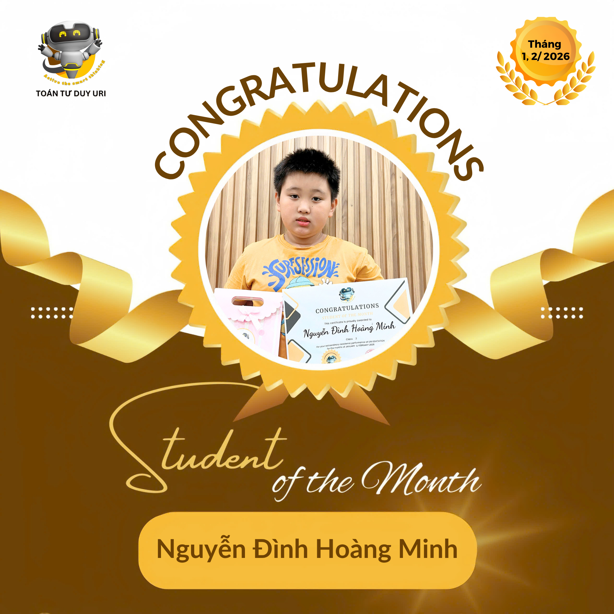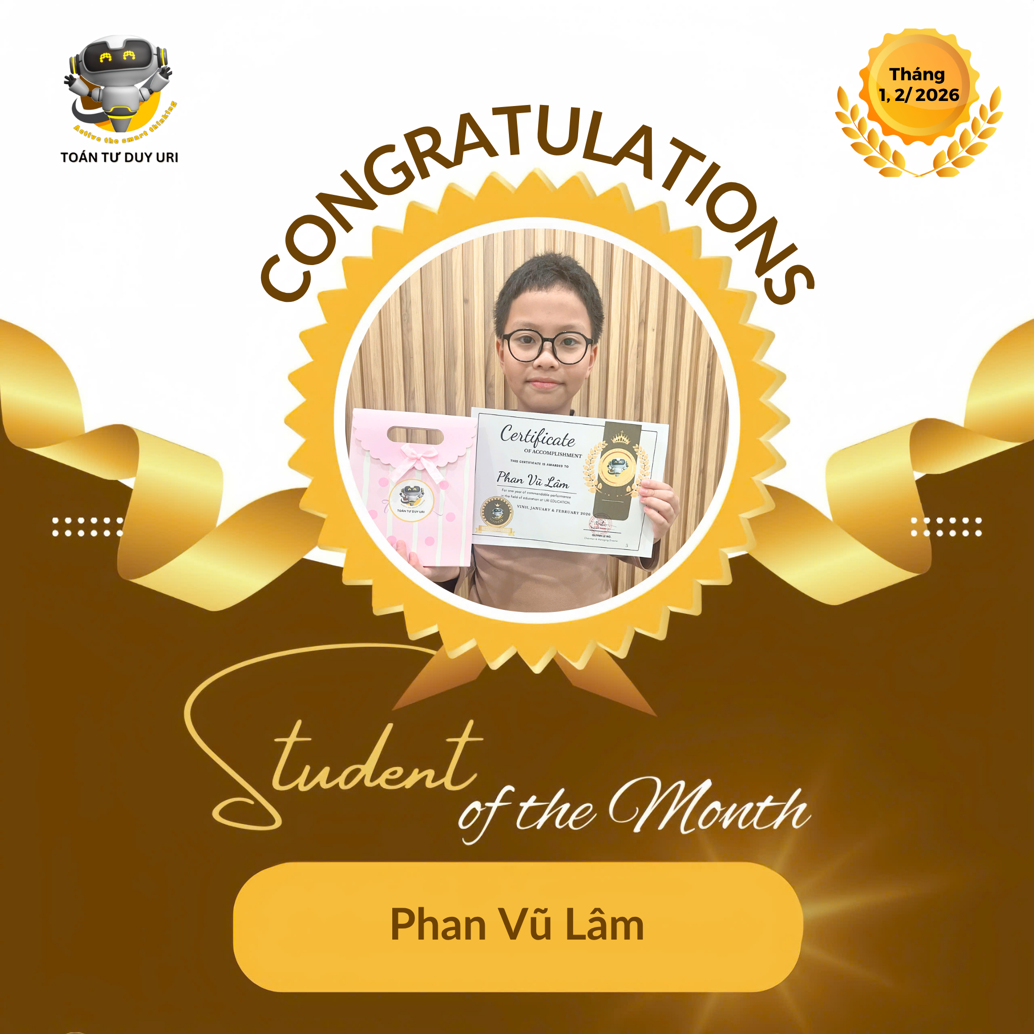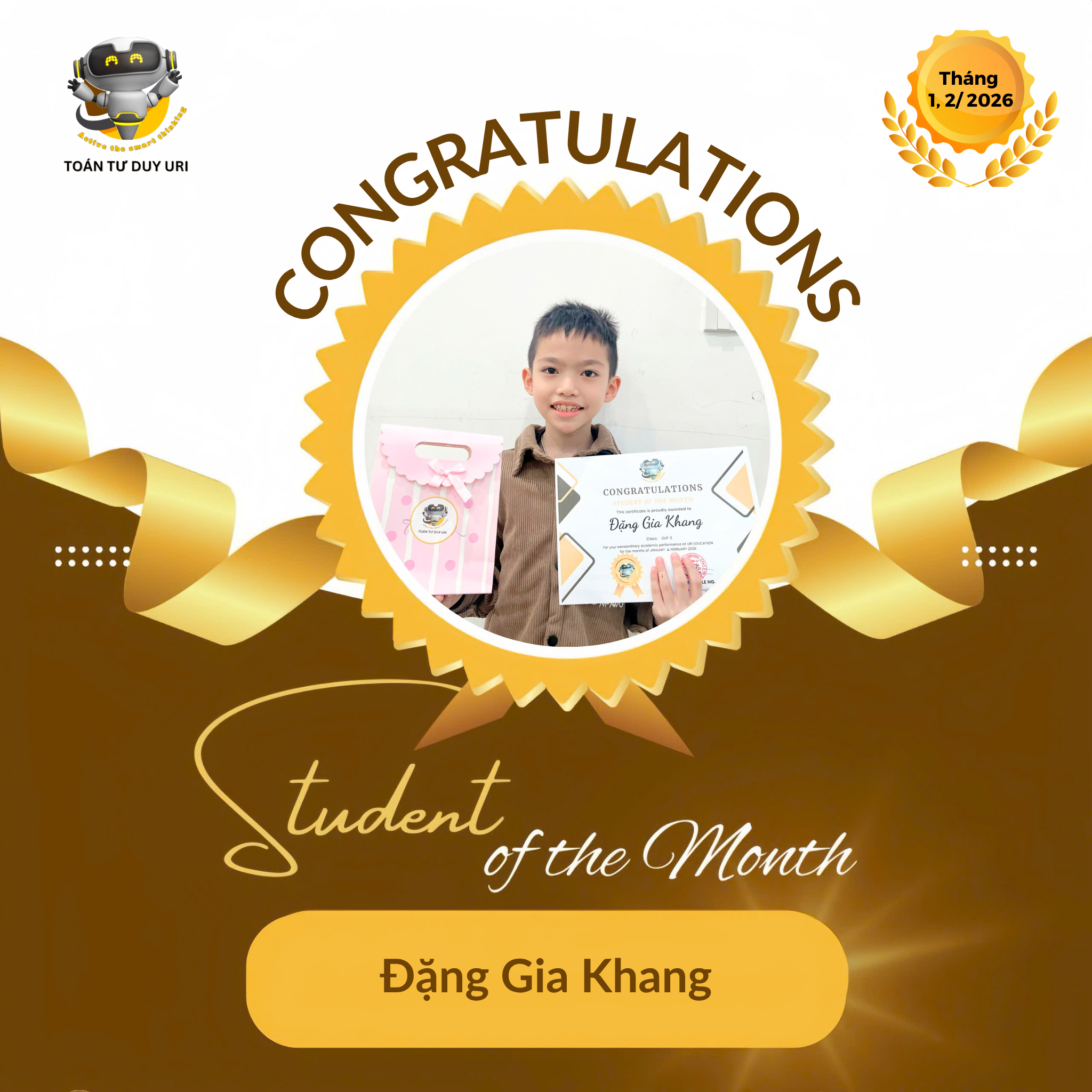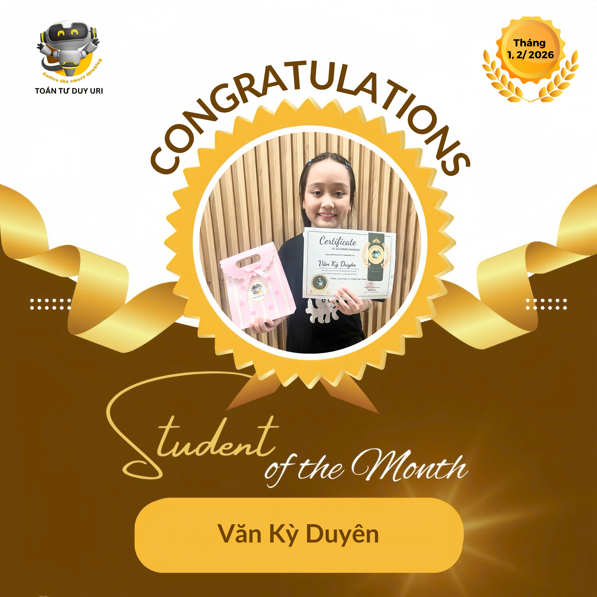 Hệ thống Toán Tư Duy URI mong niềm vui nho nhỏ này sẽ động viên các bạn nhỏ tiếp tục phát huy và đạt được kết quả tốt hơn nữa.